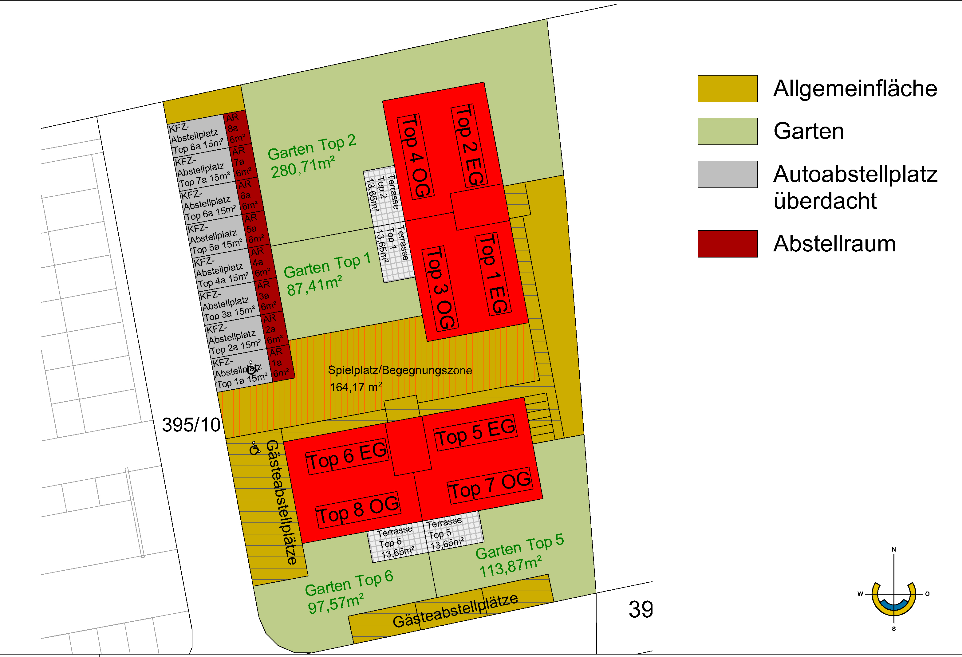 Ein versperrbarer Abstellraum im Freien ist jeder Wohnung zugeordnet.