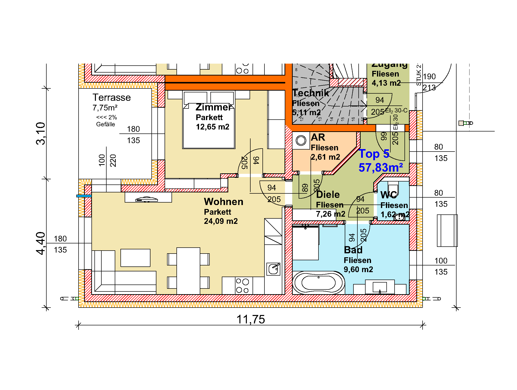 Top 7 OG , 57,83 m2, Balkon 7,75 m2, Kaufpreis EUR 210.000